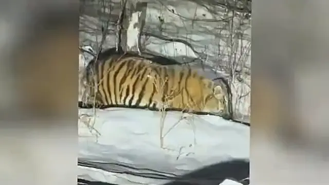 那么这只老虎为何没有被鸣笛声吓跑?东北虎的听觉极其灵敏,灵敏度是人类的6倍,能捕捉到2公里外的微弱动静。而汽车喇叭声是高频、尖锐的人工噪音,对老虎而言属于陌生信号。这种突然的听觉冲击会瞬间激活它的"危险预警系统",导致肌肉紧绷、身体一激灵,本质是快速进入戒备状态的生理反应。